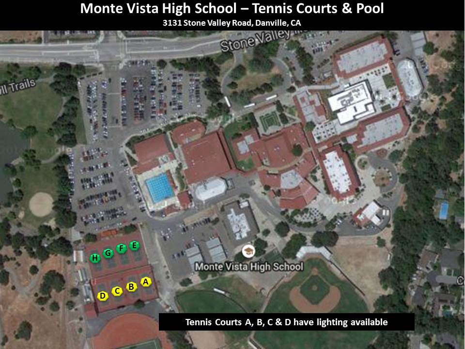 **Please note: Monte Vista High School and San Ramon Valley High School Tennis Courts are available to the general public Monday - Friday after school hours and all day Saturday and Sunday.